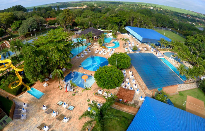 12 piscinas (9 aquecidas), toboágua radical com 70 metros de rampa, tobogãs, splash-bar e piscina gigante aquecida e coberta
